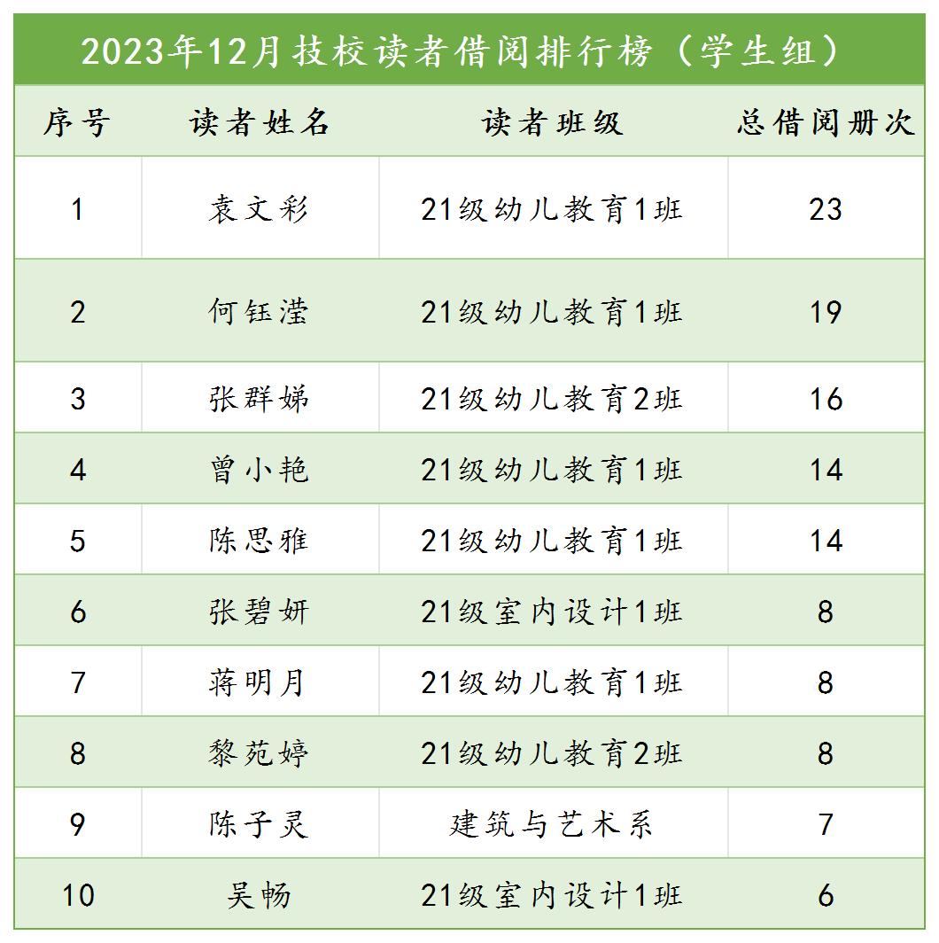 3.2023年12月读者借阅排行榜(学生组)